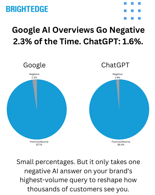 BrightEdge data shows that Google and ChatGPT surface negative brand mentions very differently across industries. Knowing where and why this happens is the next frontier of AI search optimization.